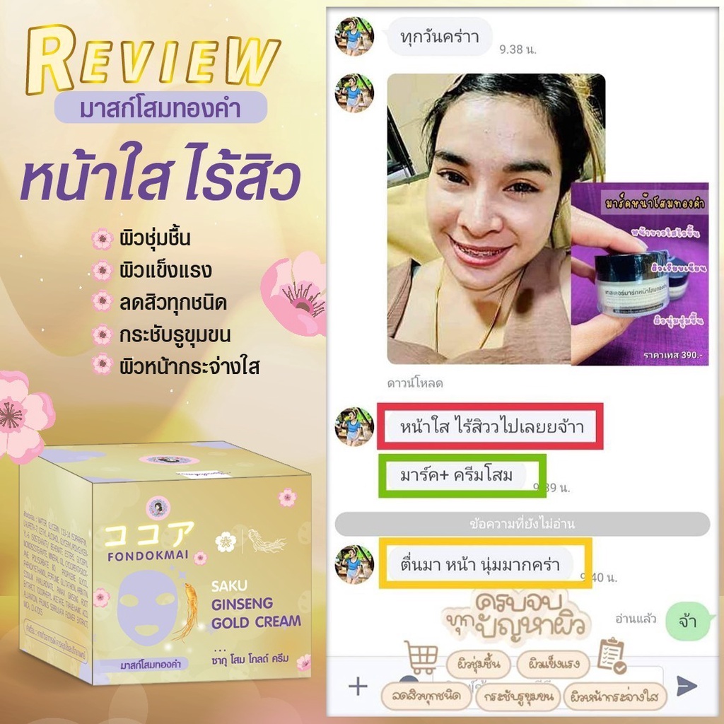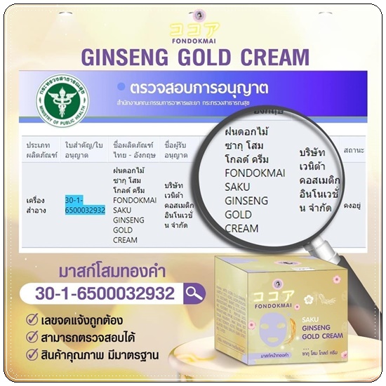 Fondokmai Saku Ginseng Gold Cream มาส์กโสมทองคำ พี่ฝน ซากุ โสม โกลด์ ครีม 20g.