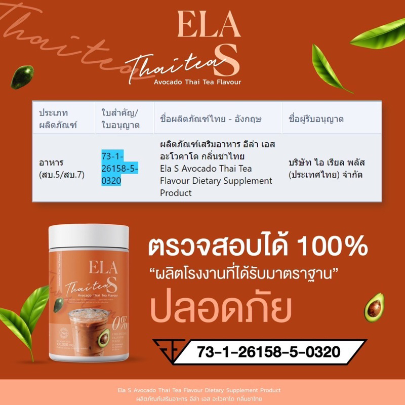 ELA S Thai Tea ชาไทย อีล่าเอส คุมหิว 100g.