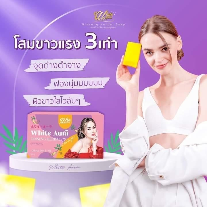 -19% SP สบู่ ขัดผิวกาย ทำความสะอาดร่างกาย SP376 : WhiteAura สบู่โสมไวท์ออร่า (สูตรใหม่) ก้อนใหญ่เร่งขาว แรงX3 160g. ฿150฿180 สมาชิก VIP ฿145