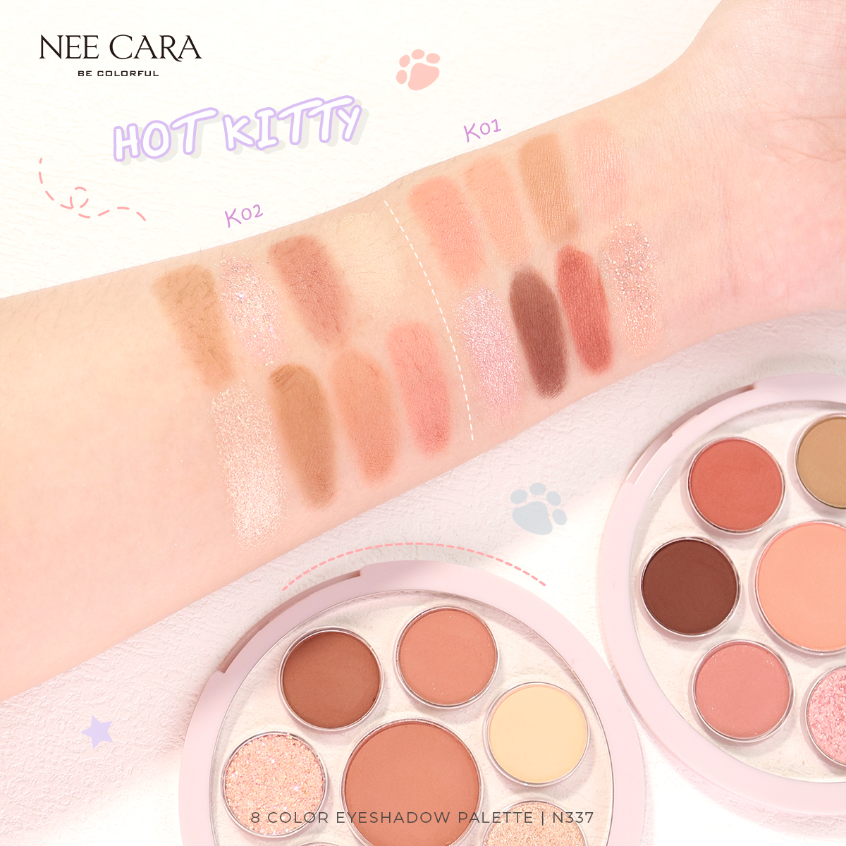 NEE CARA พาเลทตา 8 ช่อง BE COLORFUL 8 COLOR EYESHADOW K02 9.5 กรัม