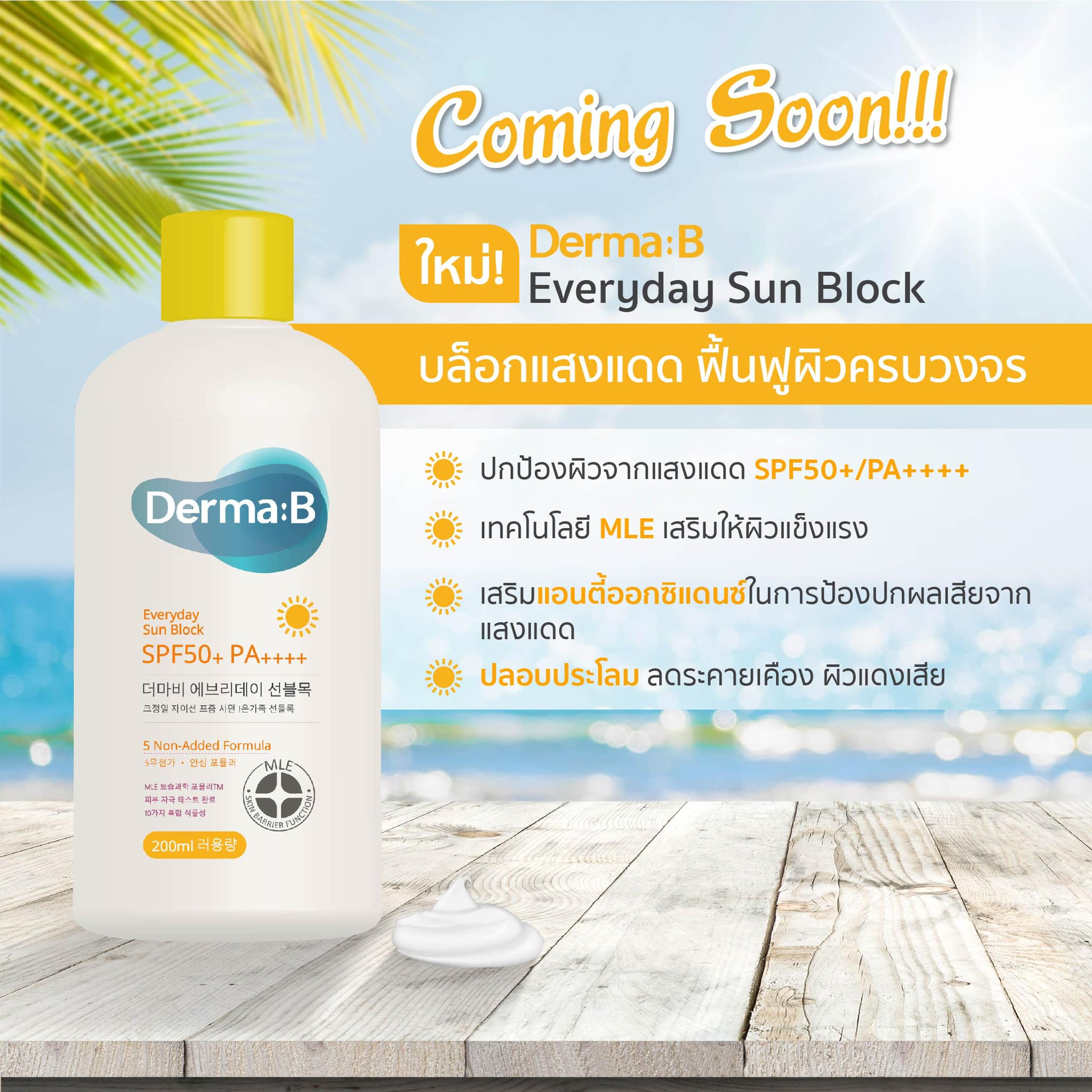 Derma:B Everyday Sun Block SPF50+ PA+++ เดอม่า บี ครีมกันแดดเกาหลี 200 ml.