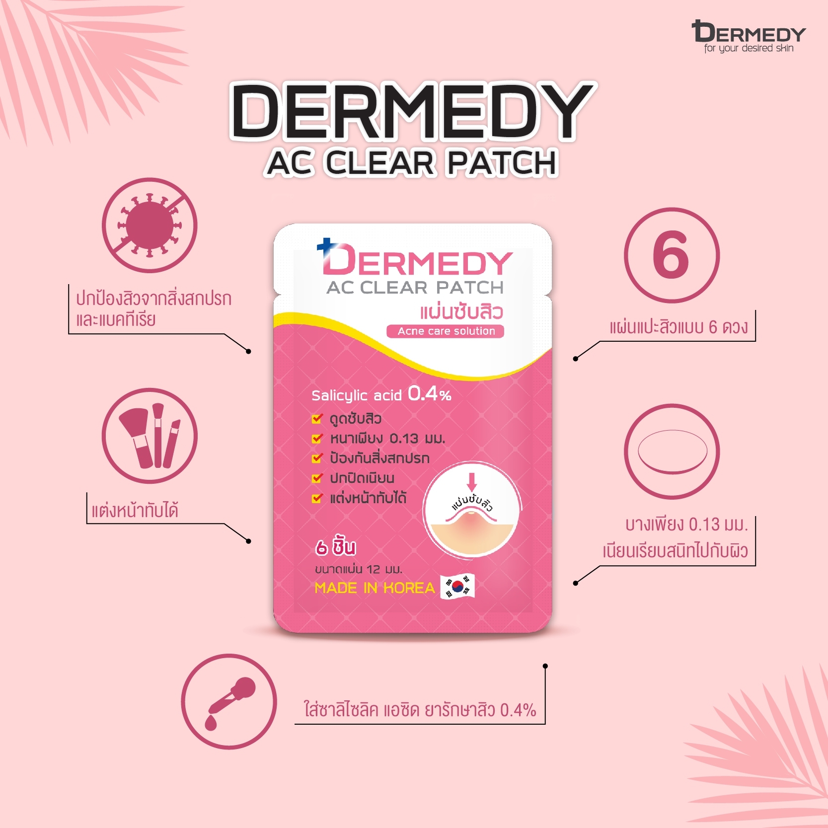 Dermedy Ac Clear Patch 18 Dots.แผ่นซับสิว (ยกล่อง/6ซอง) 18 ชิ้น