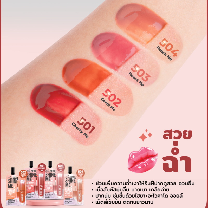 ลิปกลอสทิ้นท์ปากกระจก เนื้อฉ่ำ แวววาว ช่วยเพิ่มความฉ่ำเงาให้ริมฝีปากดูสวย อวบอิ่ม
