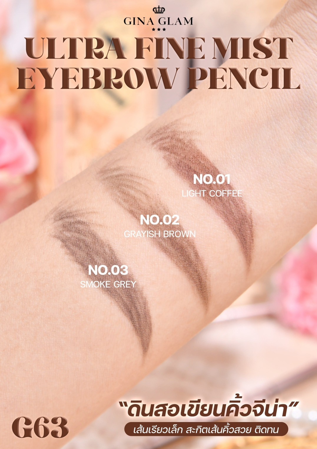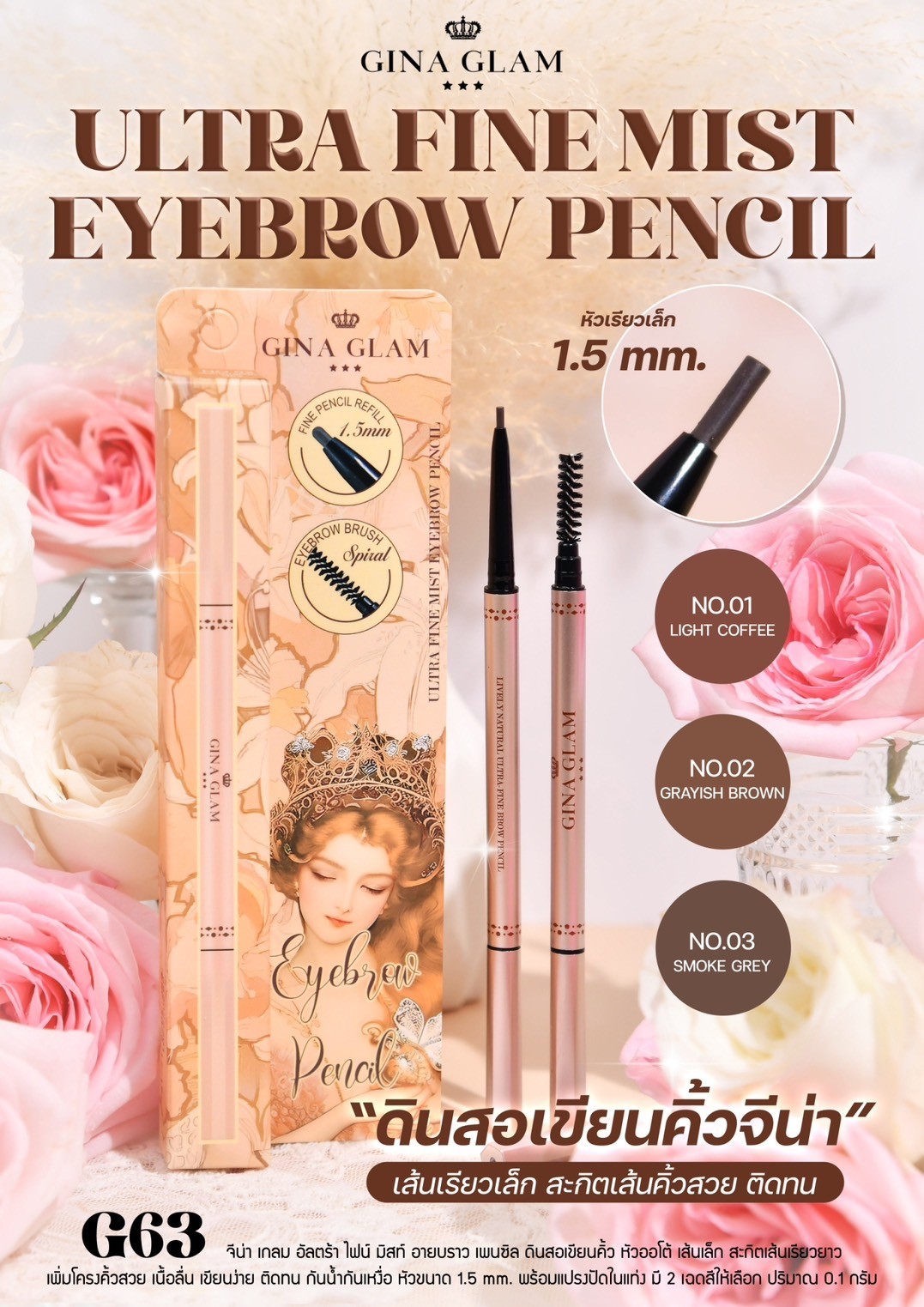 gina glam G63 ultra eyebrow pencil #01 เขียวคิ้ว 0.1g.