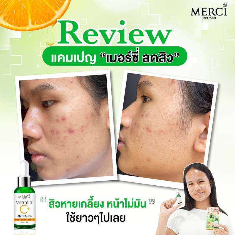 MERCI เซรั่มสูตรลดปัญหาสิว Merci VITAMIN C+ ANTI-ACNE EXTRA BRIGHT SERUM 15 ml.