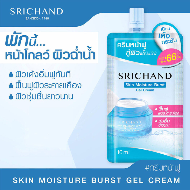 เจลครีม ศรีจันทร์ สกิน มอยส์เจอร์ เบิร์สเจลครีมเนื้อสัมผัสบางเบา ออกแบบมาเพื่อบำรุงผสานพลัง