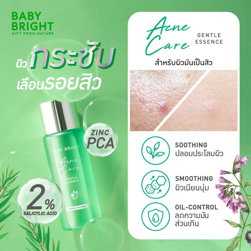ปลดล็อกผิวหมองคล้ำ เผยผิวดูโกลว์ใส ด้วยเบบี้ ไบร์ท เฮลธ์ตี้ โกลว์ ทรีทเม้นท์ เอสเซนต์ อุดมไปด้วยสารสกัดจากสาหร่าย (Seaweed Complex2) ทำให้ผิวดูอิ่มน้ำ เปล่งปลั่ง เนียนนุ่ม น่าสัมผัส มาพร้อมกับสารสกัดจากใบบัวบก ช่วยฟื้นฟูผิว พร้อมสร้างเกราะป้องกันผิว เหมาะสำหรับผิวแพ้ง่าย และล็อกความชุ่มชื้นให้ผิวดูเรียบเนียน เด้งกระชับ ไม่แห้งกร้าน ด้วยไฮยาลูรอนิค (Hyaluronic acid) ผสานคุณประโยชน์จากกรดไกลโคลิก (Glycolic Acid), กาแลคโตมัยเซส (Galactomyces Ferment Filtrate) และไนอะซินาไมด์ (Niacinamide) ช่วยผลัดเซลล์ผิวเก่าออกได้อย่างอ่อนโยน ทั้งยังช่วยปลอบประโลมผิว ลดเลือนริ้วรอยและจุดด่างดำให้ดูจางลง เผยผิวแลดูกระจ่างใสขึ้นอย่างเป็นธรรมชาติ