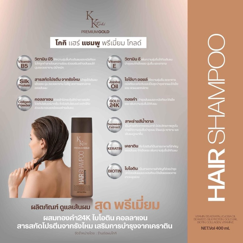รีทเมนท์โกกิ โกกิแอร์ แชมพู ฟื้นฟูผม ผมเสียแห้ง KOKI PREMIUM GOLD 400ML.