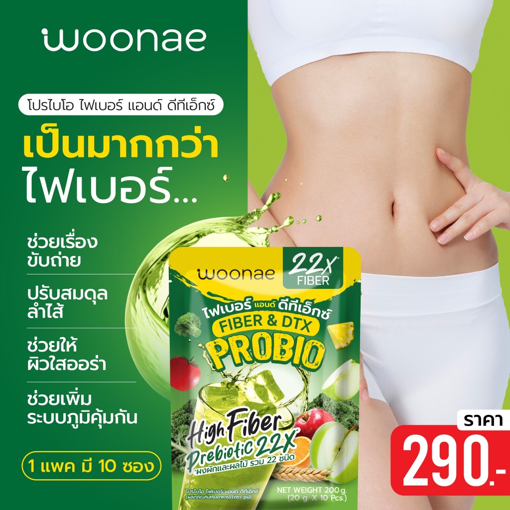 Woonae 22x FIBER & DTX PROBIO ไฟเบอร์ 20G.(10ซอง)