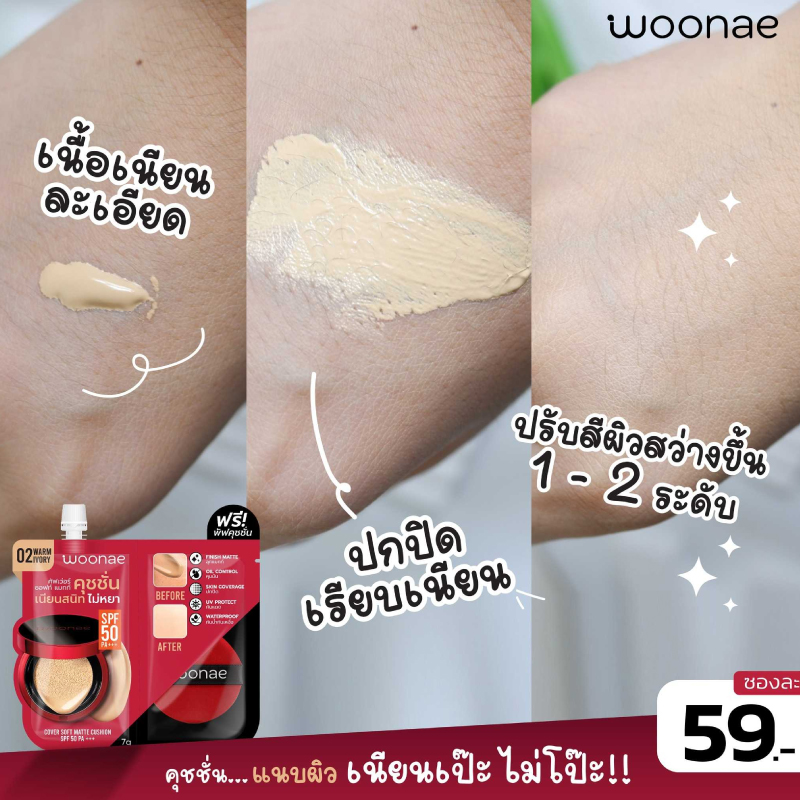 : Woonae Cover Soft Matte Cushion SPF 50 PA+++ 01 วูเน่ แมทท์ คุชชั่น 7กรัม