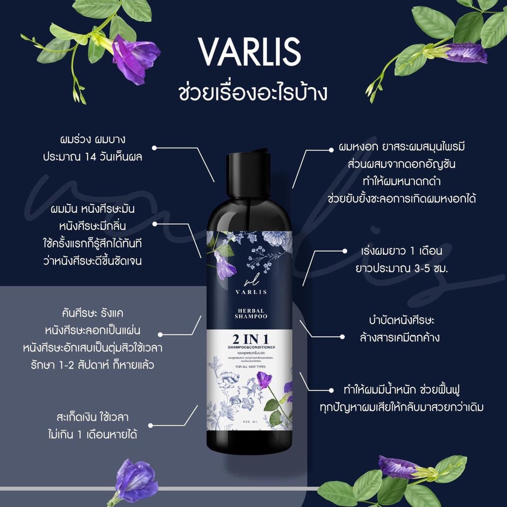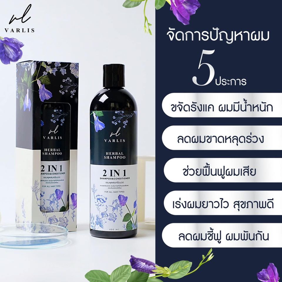 แชมพูวาริส (Varlis) 2in1 ที่รวมแชมพูกับครีมนวดไว้ด้วยกัน สกัดจากสมุนไพร 4ชนิด